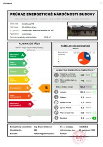 Na podlahách je plovoucí podlaha a dlažba, vytápění je řešeno podlahovým vytápěním elektrokotlem zn. Protherm (9,1 kW), či krbovými kamny s výměníkem (krbovými kamny lze řešit jak ohřev vody tak i vytápění). Ohřev vody zajišťuje bojler zn. Dražice o objemu 160 l. Průkaz energetické náročnosti budovy se aktuálně zpracovává. Dům má vlastní jímku a vrtanou studnu (hloubka 30m) napojenou na filtrační systém. Samostatná garáž o ploše 32 m² je zděná s elektricky ovládanými vraty. Pozemek o celkové rozloze 1.986 m² nabízí dostatek možností, můžete zde vytvořit například odpočinkovou část s bazénem, saunou, dětské hřiště, místo pro chov drůbeže, pěstování ovoce či zeleniny.